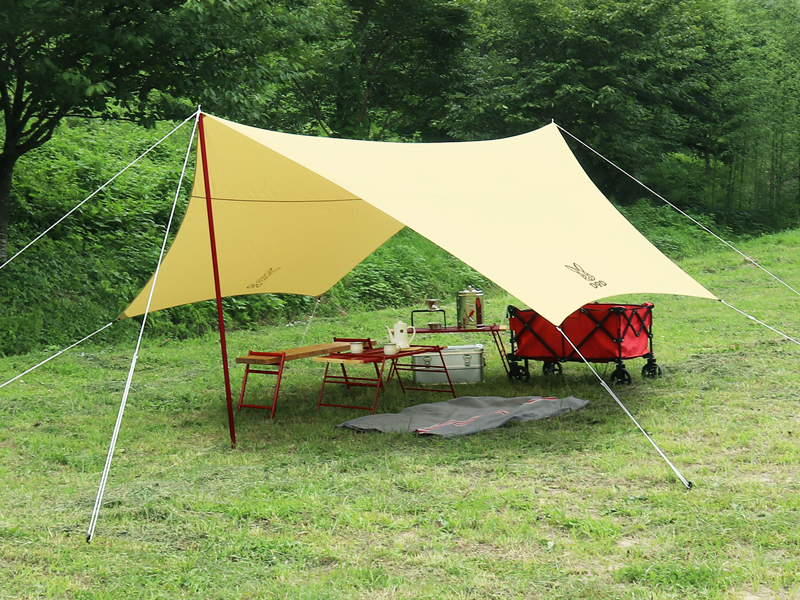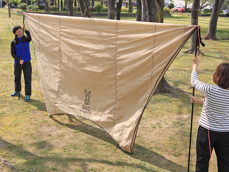 張り方もワンパターンじゃないんです。シーンに合わせた張り方で、アウトドアに華をそえましょう。